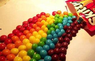 动物世界:用不同颜色的彩虹糖来模仿各种动物,比如红色的糖果代表兔子,绿色的糖果代表青蛙。